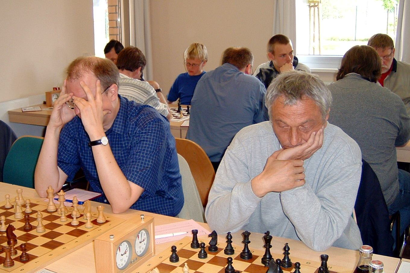 Schachwettkampf: Beginn 16:00 Uhr, 2 Stunden für 40 Züge + 30 Minuten für den Rest