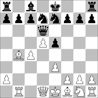 1.d4 d5 2.c4 Sc6 3.e3 e5 Rabiega will gewinnen und wählt daher eine sehr aktive, wenn auch riskante Fortsetzung. 4.cxd5 Dxd5 5.Sc3 Lb4 6.Ld2 Lxc3 7.bxc3 Die Alternative ist 7.Lxc3 exd4 8.Se2 mit gutem Figurenspiel. 7...Sge7 Dieser Zug ist die Ursache aller Schwierigkeiten. 7... Sf6 ist richtig. 8.c4 Dd6 9.d5 Sb8 10.Tb1 Sd7 Ich hatte 10...Sa6 erwartet. 11.Lb4