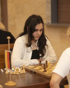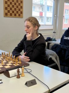 In der Runde am Sonntag gegen TuRa Harksheide war nun auch Sonja dabei, aber der Blick auf die Elozahlen der Gegnerinnen war dennoch ernüchternd. Eine schöne Partie spielte Amina Fock gegen die Nationalspielerin FM Lara Schulze und stand über weite Strecken deutlich besser und sogar klar auf Gewinn. Am Ende fand sie in beiderseitiger Zeitnot nicht den Gewinnzug und musste ins Remis einwilligen, was natürlich gegen eine so starke Spielerin auch keine Katastrophe ist. Nach dem Sieg gegen IM Katino Kachiani-Gersinska kann Amina schon ein wenig zufrieden mit dieser Saison sein.