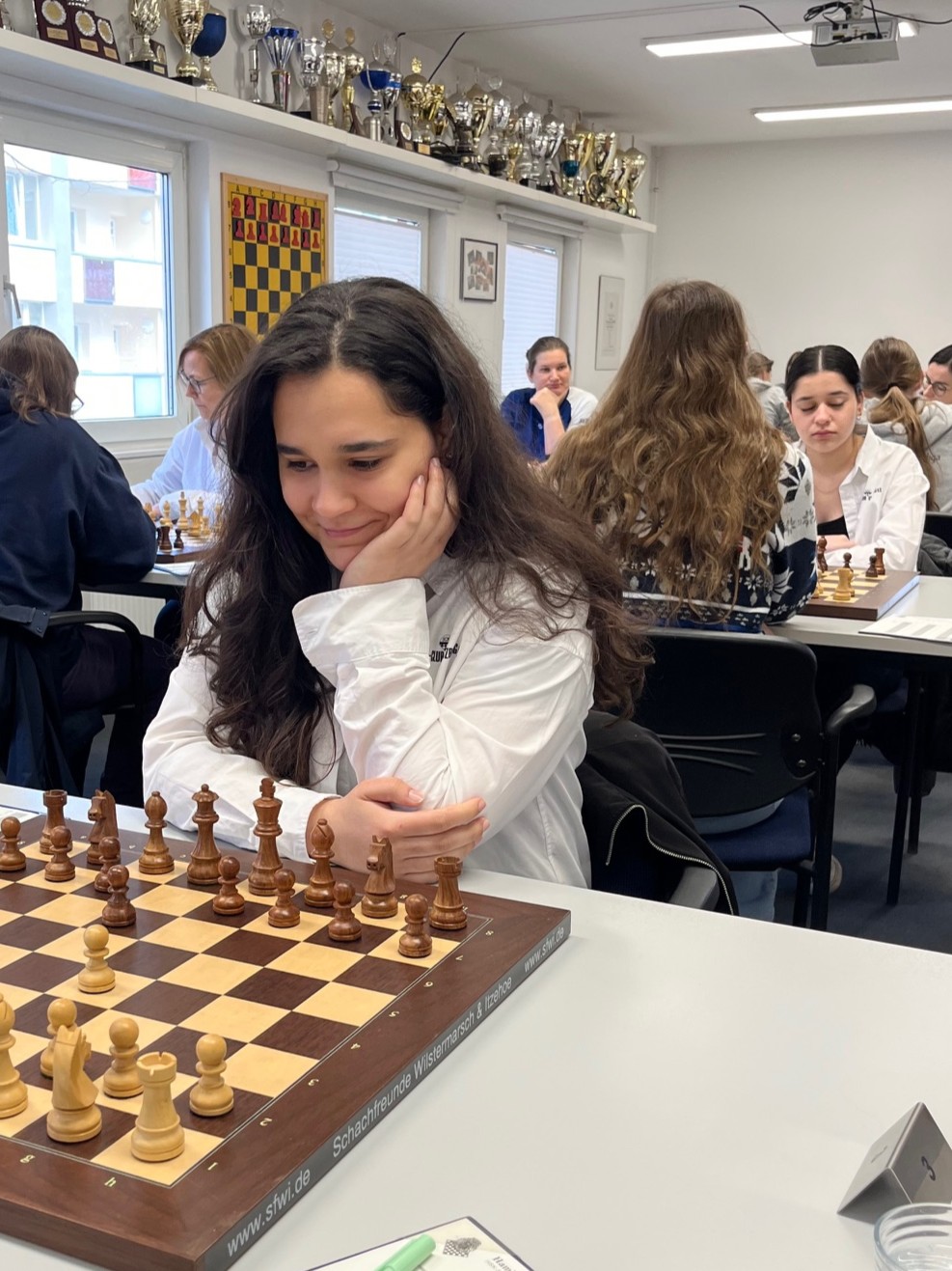 In der U18w hatte Madiha relativ leichtes Spiel, da sie sich nur gegen eine Gegnerin durchsetzen musste, der sie vom Rating her deutlich überlegen war. Was ist da los? Warum spielen in dieser Altersklasse so wenig Mädchen?