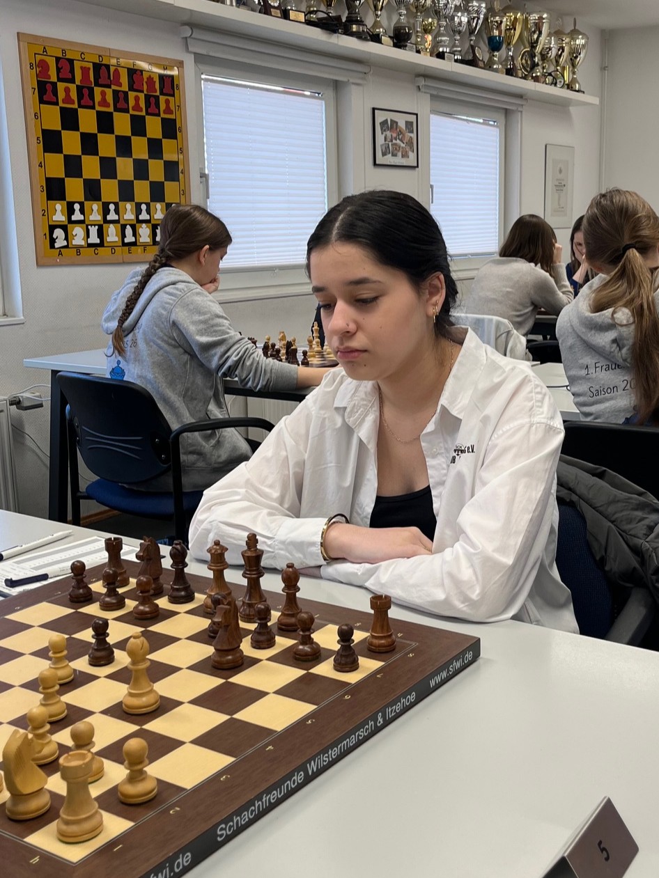 An Brett 4 hat sich Margarita Mazurtsova gegen WIM Zala Urh (Elo 2259) zäh verteidigt und konnte sich schließlich sogar mit einem Mehrbauern mit der Gegnerin auf ein Remis einigen. Madiha Fock hatte lange auf Remis gestanden in einer gut gespielten Partie gegen die ihr bestens bekannte WFM Katarina Bräutigam, hatte aber am Ende einen Zug übersehen, was Katarina den Sieg einbrachte. Das Ergebnis 5 : 1 für Harksheide war am Ende nicht so klar, wie es aussieht.