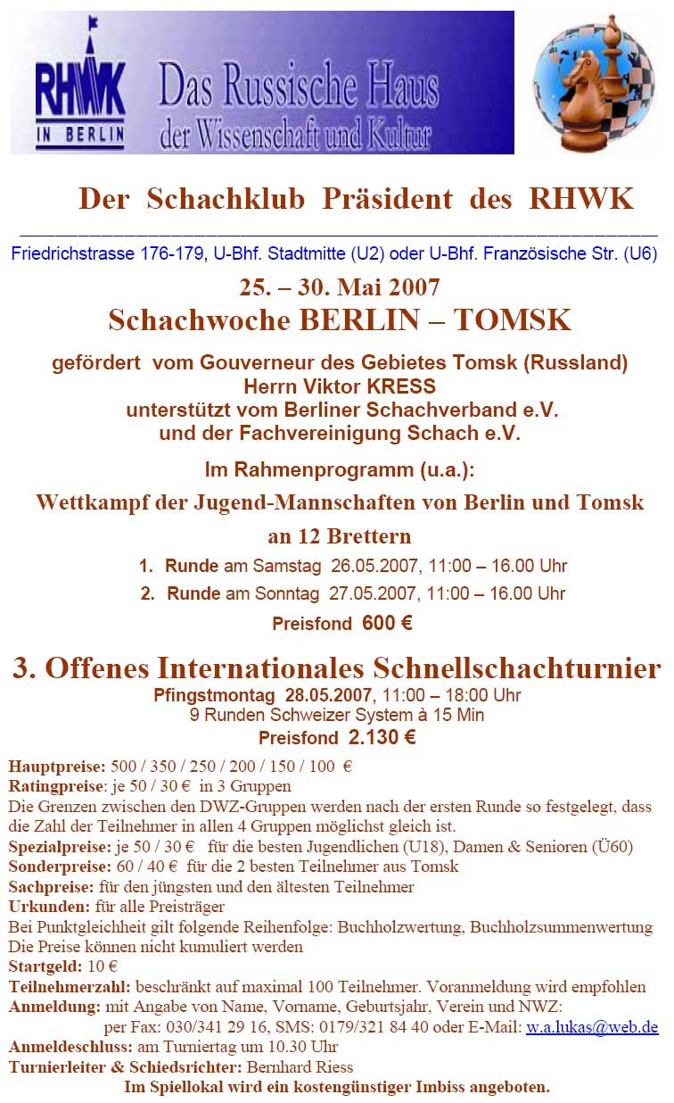 Schnellschach: Vladimir Schilow wird Zweiter