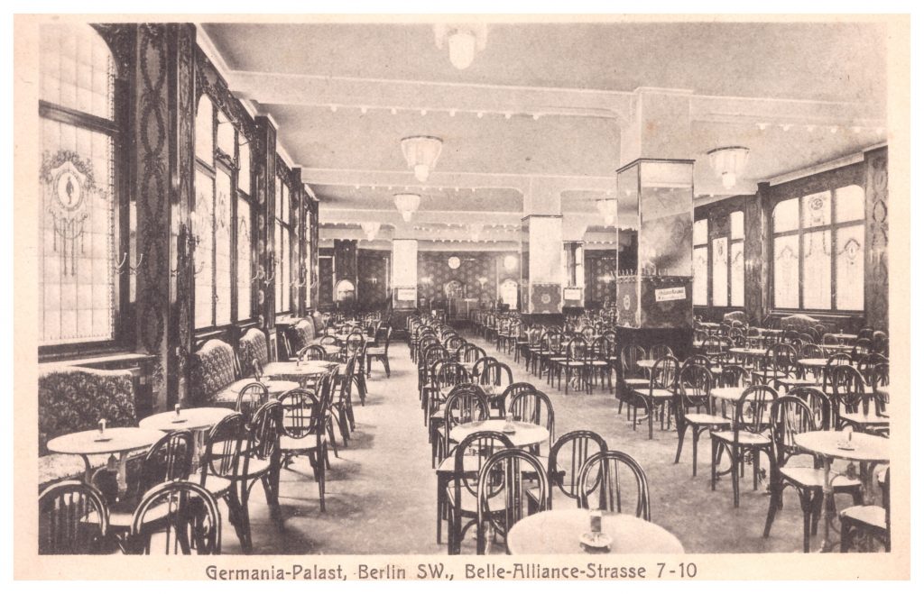 Die „Schachgruppe Kreuzberg“ unter der Leitung von Edmund Nebermann spielte 1942 im Kaffee Germaniapalast[41], Berlin SW, Belle-Alliance-Str. 7/10.