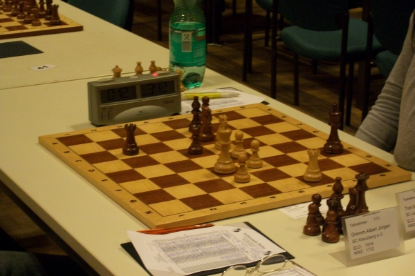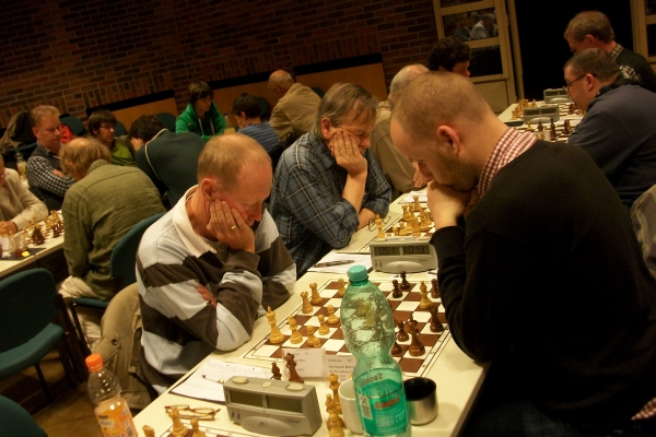 Konzentriert, aber doch gescheitert: Dirk MöllerEr gab seinem Gegner 2 Bauern vor und erhielt danach eine gewinnbringende Initiative; leider verpasste Stefan Bauer im rechten Augenblick seinem Gegner den K.O. Schlag zu verpassen. Auf dem Diagramm ist seine einstige Gewinnstellung nur noch rudimentär erkennbar.Gegen ein ehemaliges Tegler Jungtalent konnte Wolfgang Baumeister keinen ausreichenden Widerstand leisten.Jungtalent Ronny Heldt gewann sicher und souverän.Auch Neumitglied Joachim Hübscher darf sich in die Siegerliste eintragen!Er gewann souverän gegen eines der Lagunow-Talente: Julius Bahner besiegt Elina Lagunow.