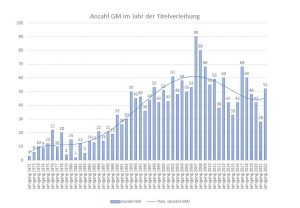 Hier wie sich die Anzahl der GM im Laufe der Jahre entwickelt hat. Man sieht sogar die Corona-Delle.