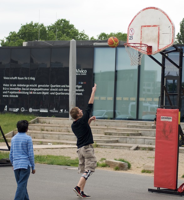 Fußball, hier jedoch ein Photo zweier Basketball spielender